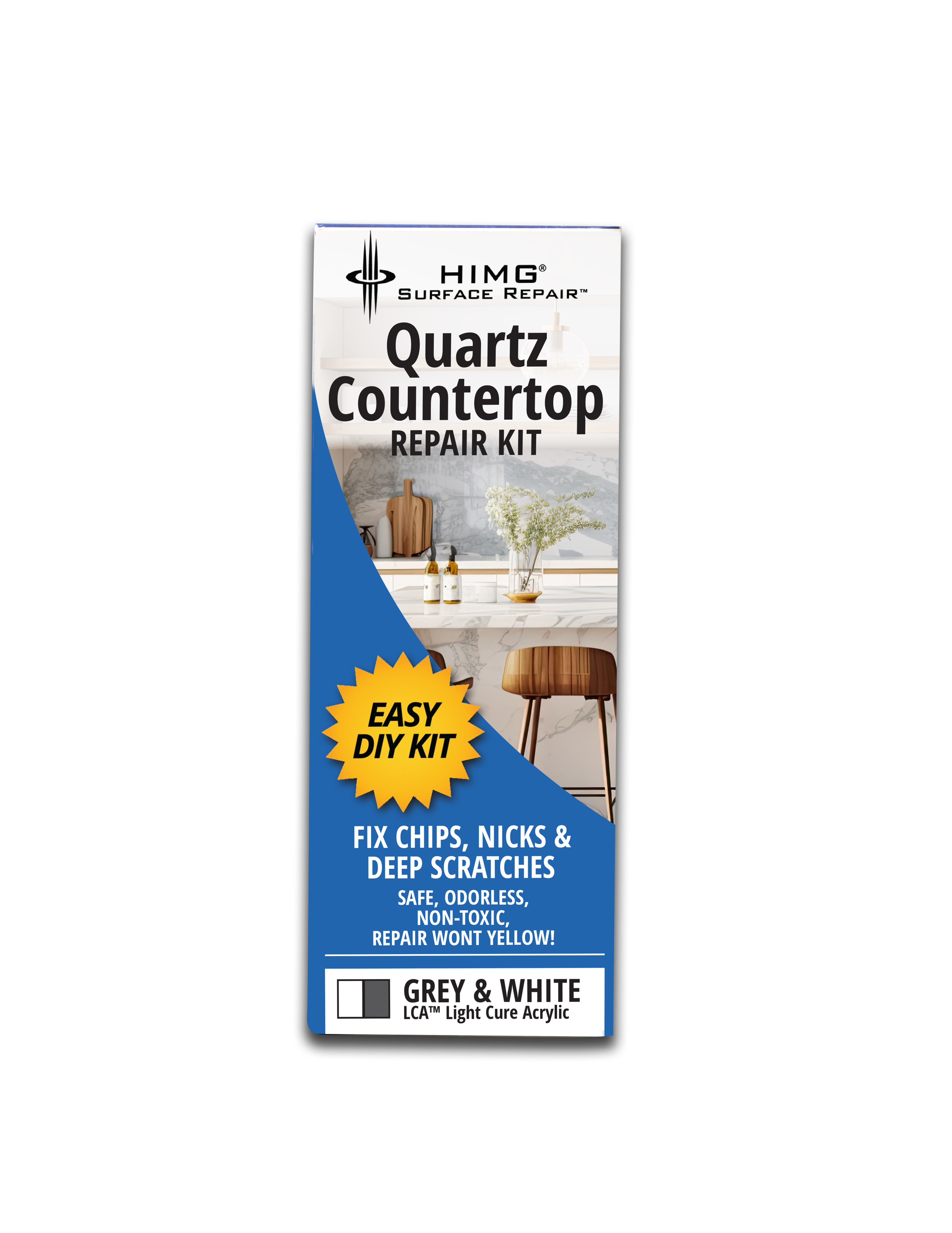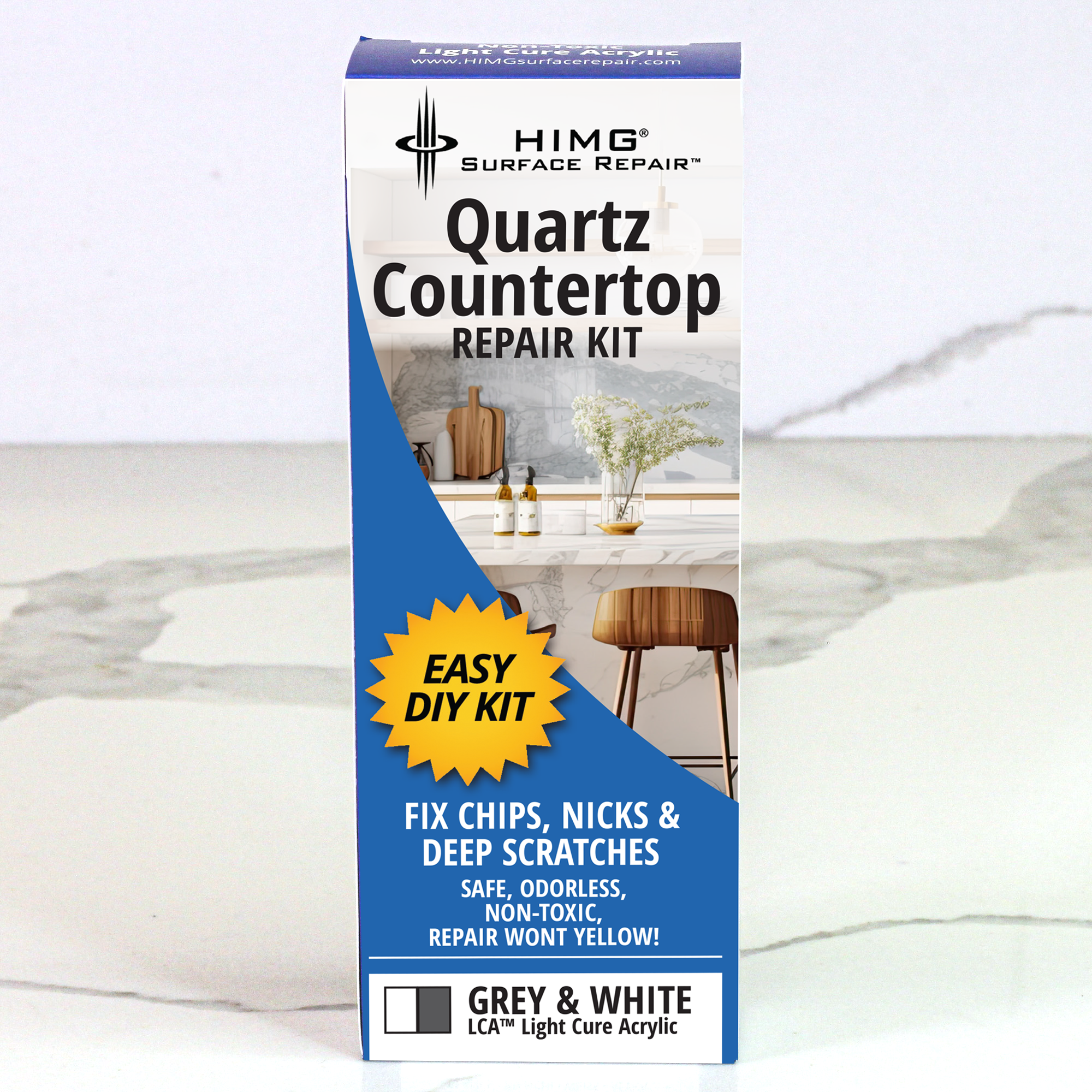 The HIMG Quartz Countertop Repair Kit provides a fast, simple solution to repairing nicks, chips, and deep scratches in quartz and other engineered surfaces. Included in the kit is a super-bright Mini Pen Light, which helps to speed up the curing process. The light cure acrylic cures in just 2-3 minutes, allowing for swift repairs without toxic ingredients. No mixing required! And, the kit is safe for food prep areas.